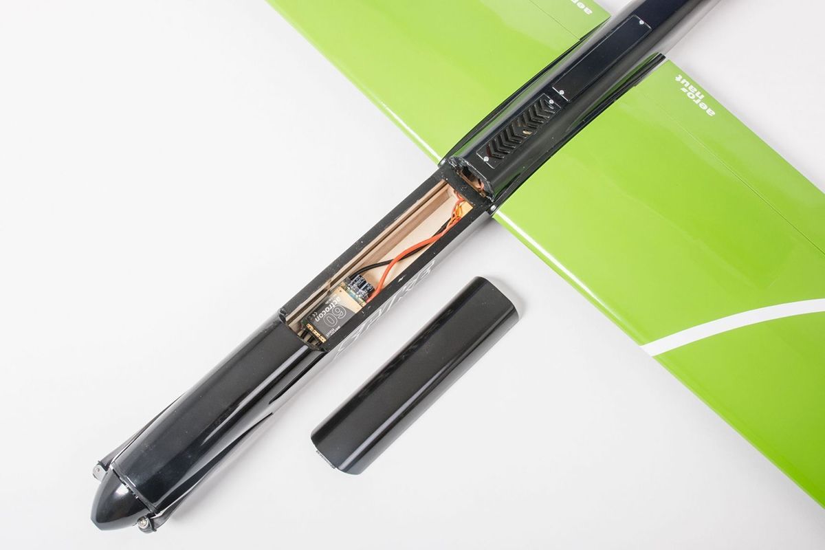 Účinný elektrický pohon: Spike přesvědčí svou nízkou spotřebou energie. Je optimalizován pro LiPo akumulátory s 3S nebo 4S a odpovídající motor s cca 790 kV a sklopnou vrtulí. (Vhodné pohonných komponenty jsou k dispozici samostatně jako příslušenství).