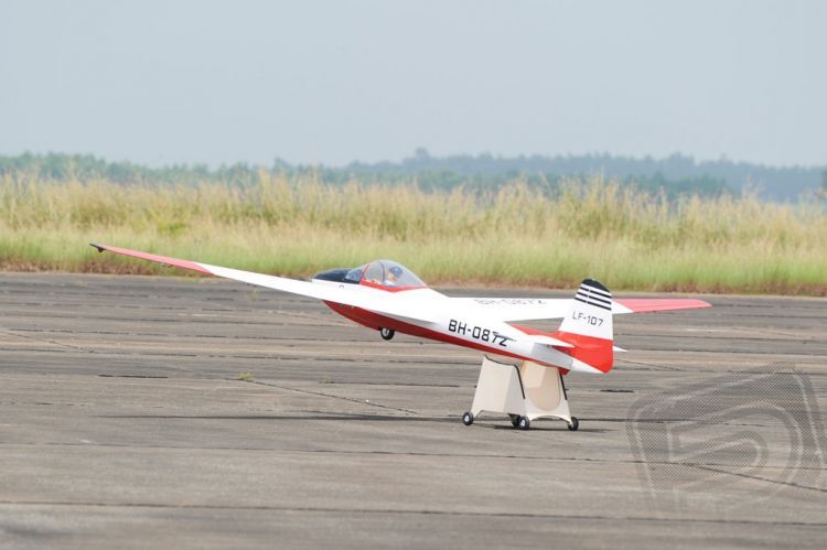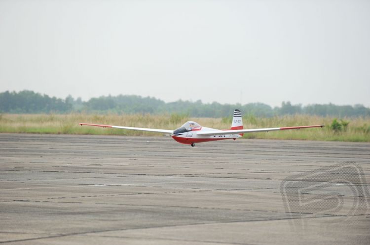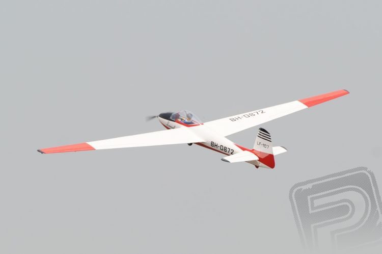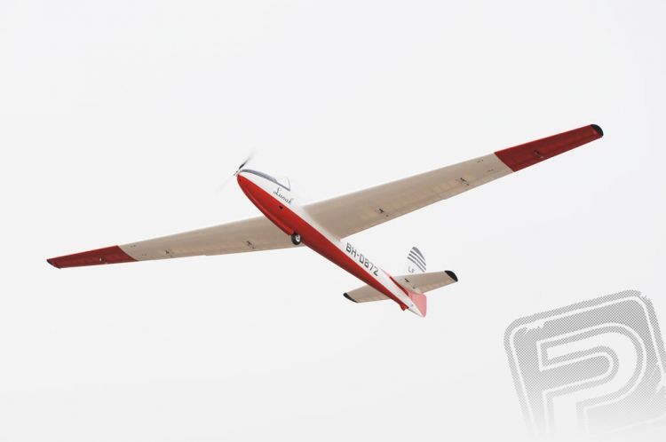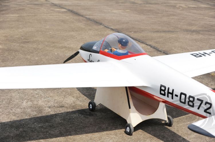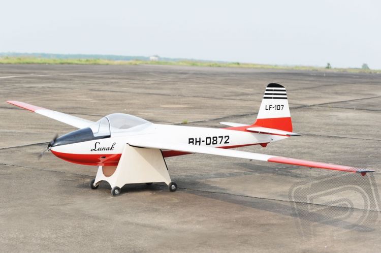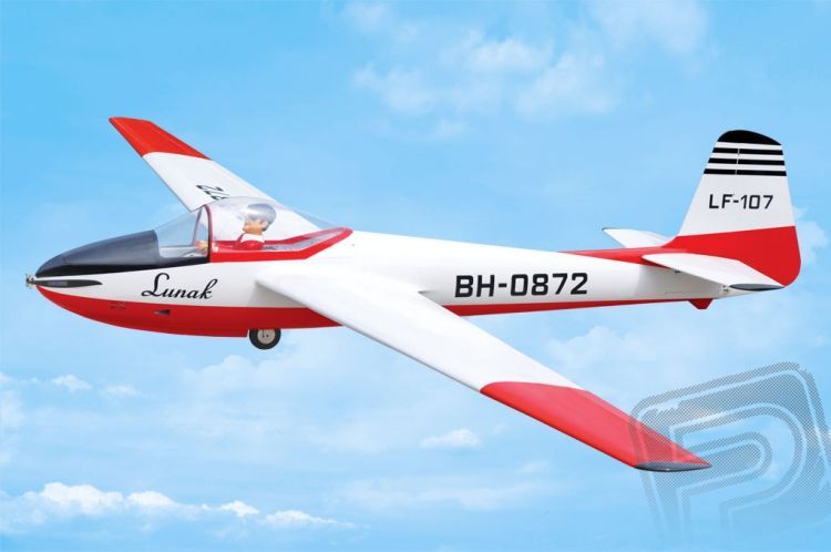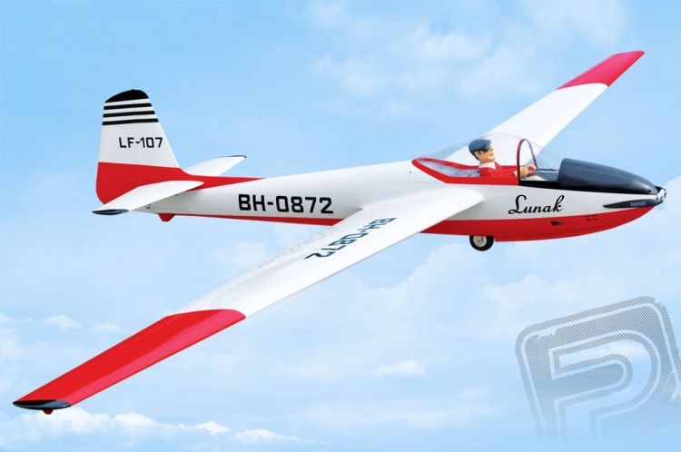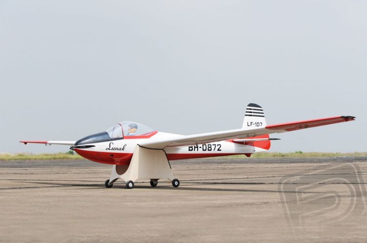 Polomaketa historického akrobatického větroně 6000 mm. Konstrukční trup a nosné plochy potažené ORACOVEREM, ovládaná křidélka, směrovka, výškovka a háček pro aerovlek. Vč. startovacího vozíku a přepravních obalů.