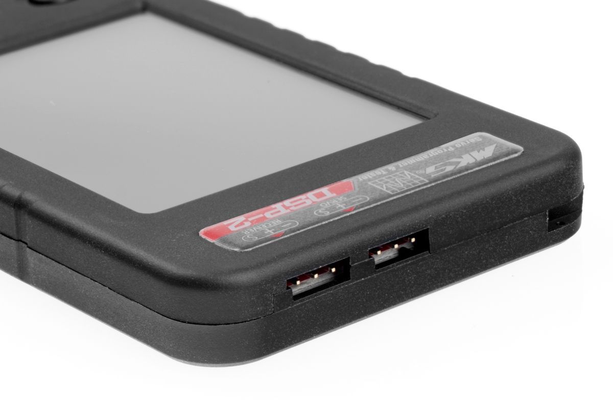 Autonomní programátor/tester serv MKS s rozšířenými možnostmi programování. Díky dotykovému displeji máte k dispozici nástroj pro programování a testování s komfortní obsluhou použitelný kdykoliv a kdekoliv. Servo je při programování napájeno z přijímačového akumulátoru připojeného k programátoru (5,1-15 V dle typu serva a jeho provozního napětí). Všechny parametry se nejprve nastaví na displeji DSP-2 a následně nahrají do vašeho serva. Programátor také může pracovat jako servotester s volitelnou opakovací frekvencí použitelný pro všechna serva - analogová i digitální, s neutrálem 1,5 ms i úzkopásmová 760 µs. Může také měřit šířku pulsů řídícího signálu pro klasická serva (PWM) na kanálových výstupech přijímačů.