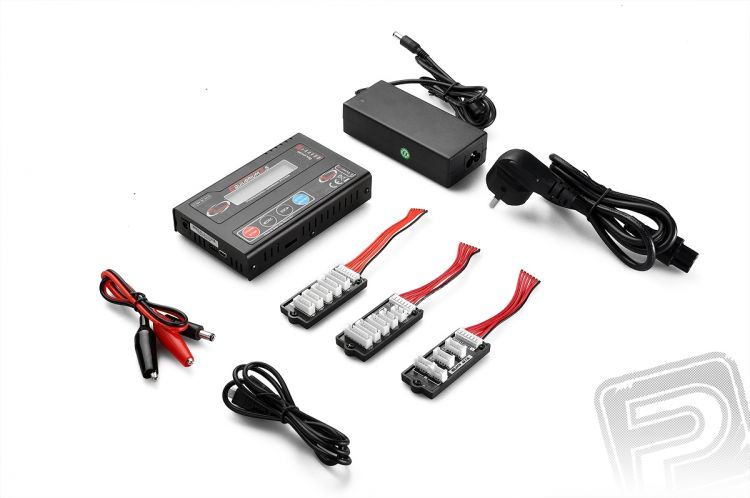 Rychlonabíječ s balancerem 1-16čl. NiCd/NiMH, 1-6čl. Li-po/Li-ion/Li-Fe, 2-24V Pb proudem 0,1-6A. Vybíjení max. 2A. Vstup tepl. čidlo, vypínání dle teploty, kapacity, času. Napájení 12 V+ síťový zdroj. Režim zdroje napětí s proud. pojistkou