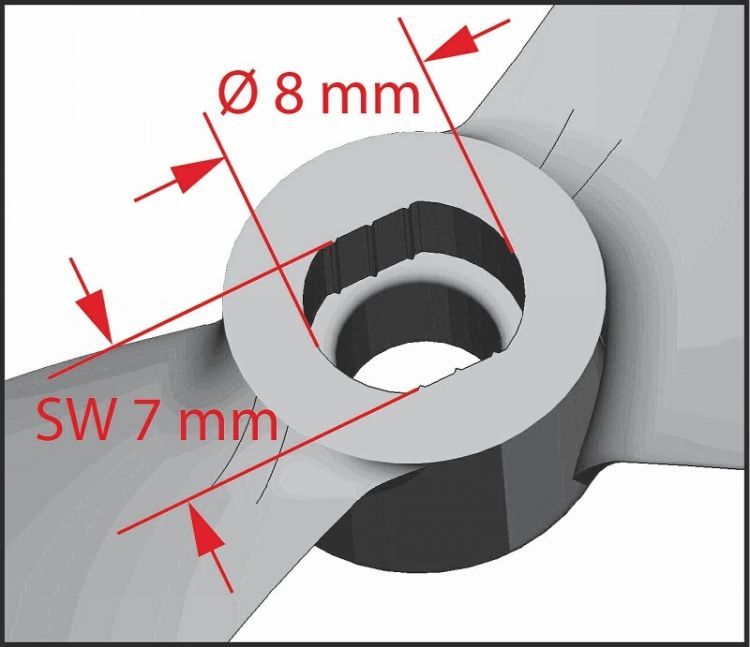 Plastová vrtule plněná skelnými vlákny, 5,5/5 palců, vrtání 5/6/7 mm, v balení je jeden pár levých a jeden pár pravých vrtulí.