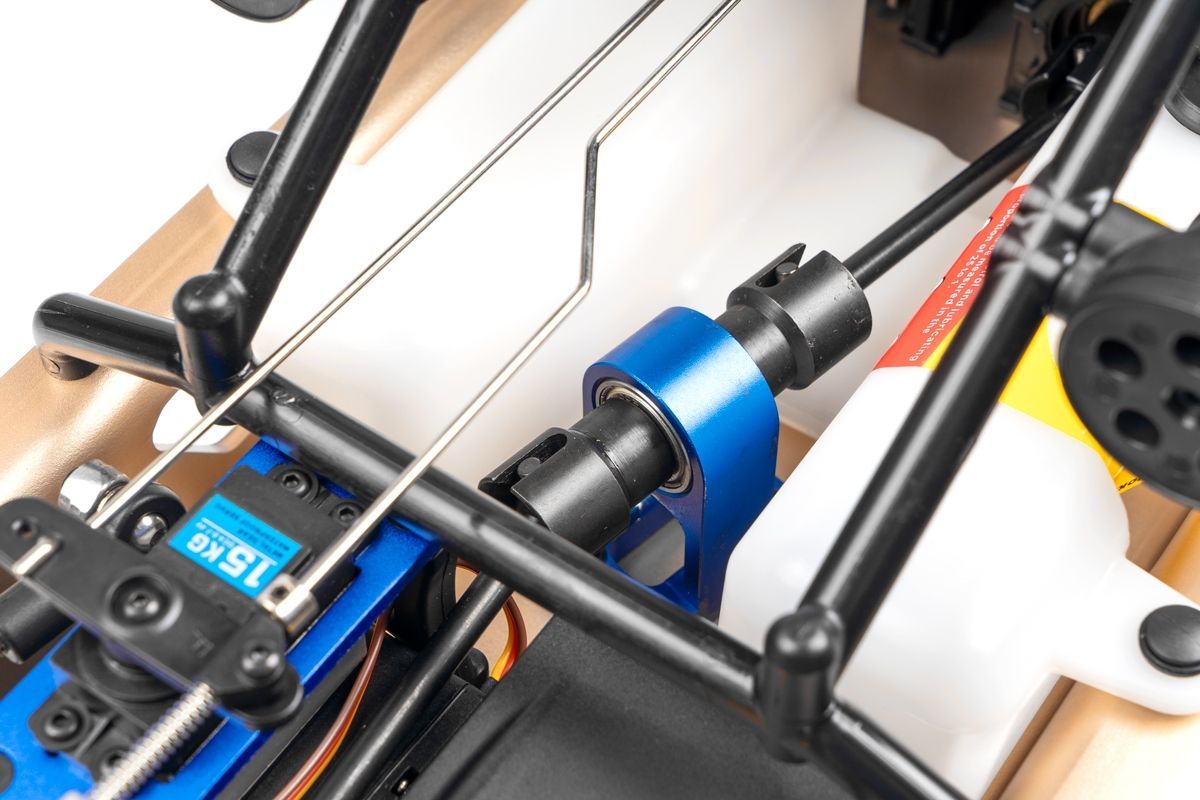 Provedení podvozku je velice podobné modelům menších měřítek, jen konstrukce a použité materiály jsou podřízeny tomu, aby skoro 13 kg model odolal i v těch nejnáročnějších podmínkách. Motor o obsahu 32ccm pohání přes odstředivou spojku pomocí rozvodovky a ocelového stálého převodu všechna čtyři kola, což je v této kategorii zcela ojedinělé.