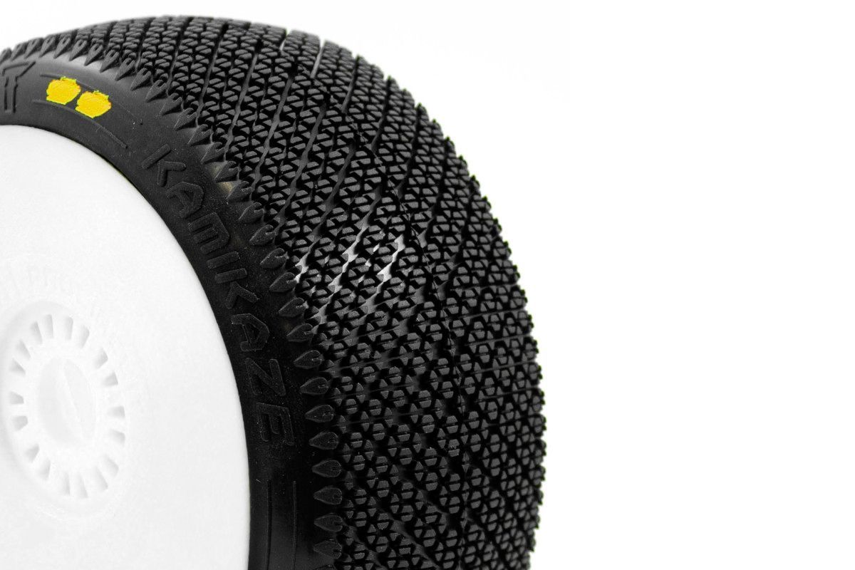 KAMIKAZE V2 BUGGY S2 (SOFT) nalepené pneumatiky, bílé disky, 2 ks.