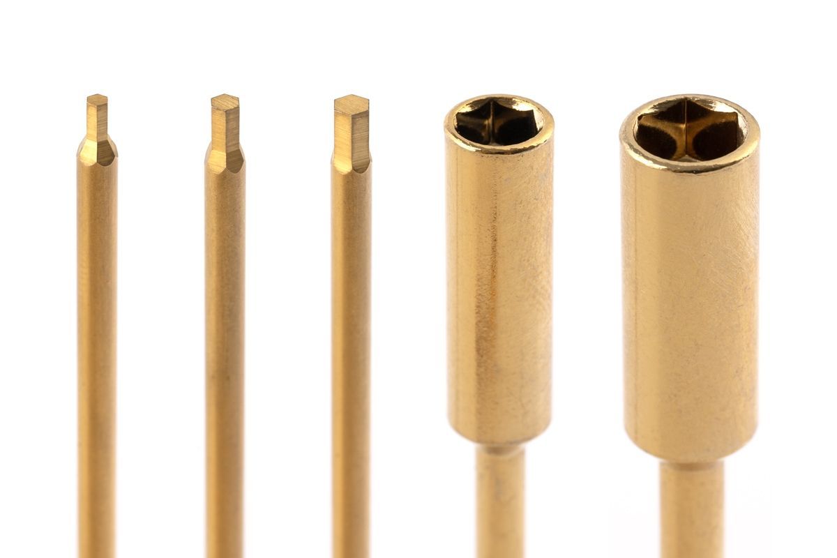 Sada 5 bitů pro elektrické šroubováky, vyrobených z tvrdé oceli s titanovou povrchovou úpravou. Součástí je 1,5mm, 2,0mm, 2,5mm, 5,5mm a 7,0mm bit pro 6,35mm šestihranný adaptér.