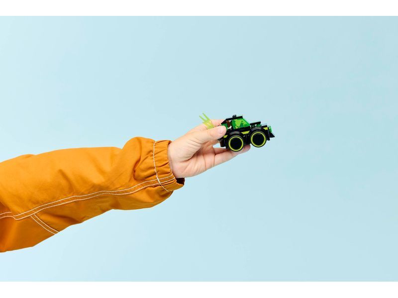 - MINI AUTÍČKO PRO TVOŘIVOU ZÁBAVU Ikonický design herního autíčka s neonovým vzorem, obřími gumovými pneumatikami, kokpitem pro řidiče a hořícím výfukem pro nápadité hraní