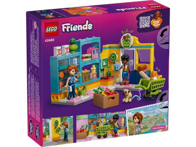 - HRAJTE SI NA NÁKUP Se stavebnicí LEGO® Friends Samoobsluha v městečku Heartlake(42680) si děti zahrají na zábavné výlety do minimarketu, doplní regály, nakoupí, zaplatí za zboží a recyklují láhev