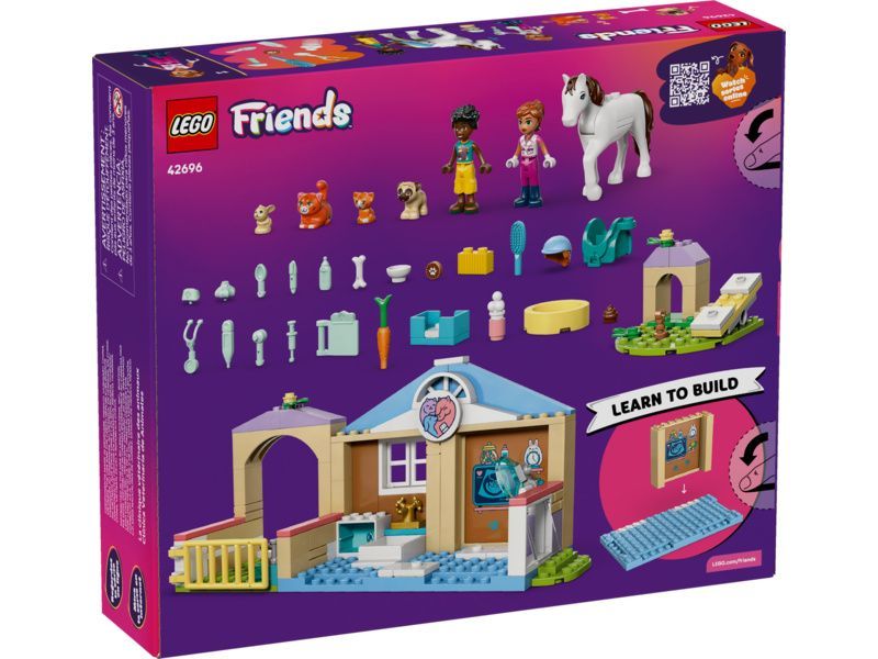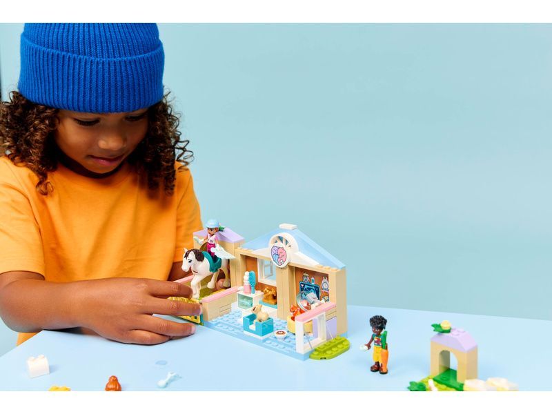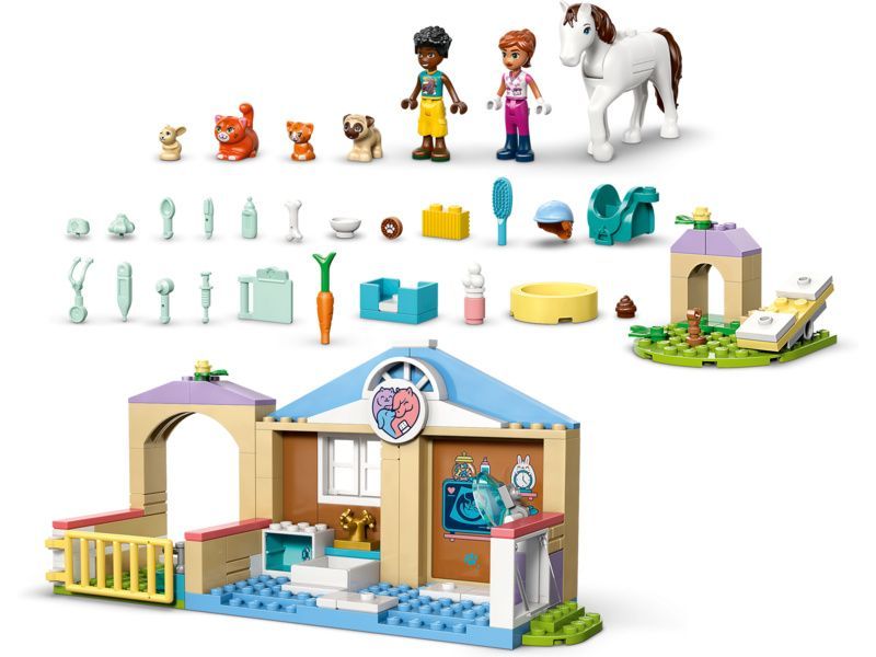 - PÉČE O DOMÁCÍ MAZLÍČKY Stavebnice LEGO® Friends Veterinární klinika se zvířátky(42696) obsahuje vše, co děti potřebují k hraní na péči o zvířata, včetně modelu koňské stáje, vyšetřovny, hřiště pro domácí mazlíčky a spousty dalšího