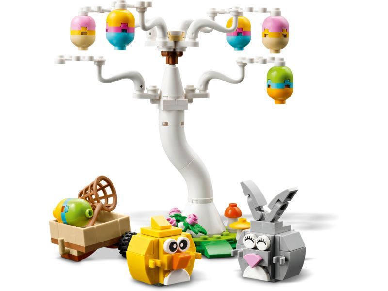 Stavebnice představuje zábavný velikonoční dárek pro dospělé, děti a milovníky zvířat a je ideálním společným stavitelským projektem pro celou rodinu a přátele. Sestavte strom, vůz, ptáčka a zajíčka z kostek LEGO® a pak postavte a připevněte pestrobarevná vajíčka na větve stromu, aby je zvířata našla. Pomozte kuřátku a velikonočnímu zajíčkovi posbírat vajíčka pomocí síťky a uložit je do vozíku.