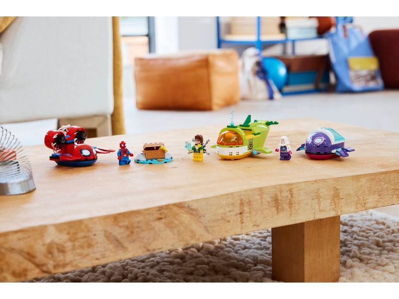 - 3 MINIFIGURKY Zapojte malé superhrdiny do dobrodružství s minifigurkami Spideyho, Ghost-Spider a Doktorky Ock a jejich modely ponorek s velkými začátečnickými kostkami, díky nimž je stavění rychlé a zábavné