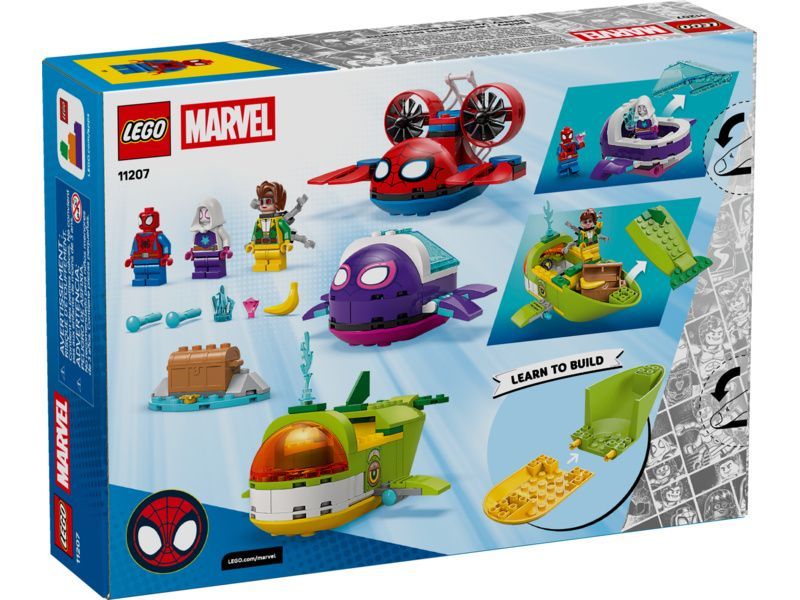 Nechybí trojice podmořských vozidel: Spideyho krabí ponorka s velkou pavučinovou pastí, želví ponorka Ghost-Spider s otevíracím průhledným krunýřem a velrybí ponorka Doktorky Ock s vystřelovači na ploutvích a úložným prostorem pro truhlu s pokladem. Stavebnice Spidey: Podmořská vozidla poslouží jako skvělý dárek k narozeninám pro fanoušky seriálu Spidey a jeho úžasní přátelé.