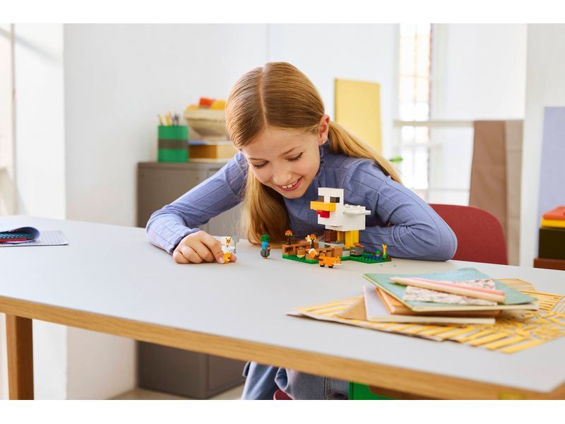 - STAVEBNICE NA MOTIVY VIDEOHRY Užijte si s touto stavebnicí LEGO® Minecraft® hodiny hraní na péči o slepice, prozkoumejte řadu zábavných funkcí v kurníku a braňte se před malým zombie, které se snaží svézt na kuřeti