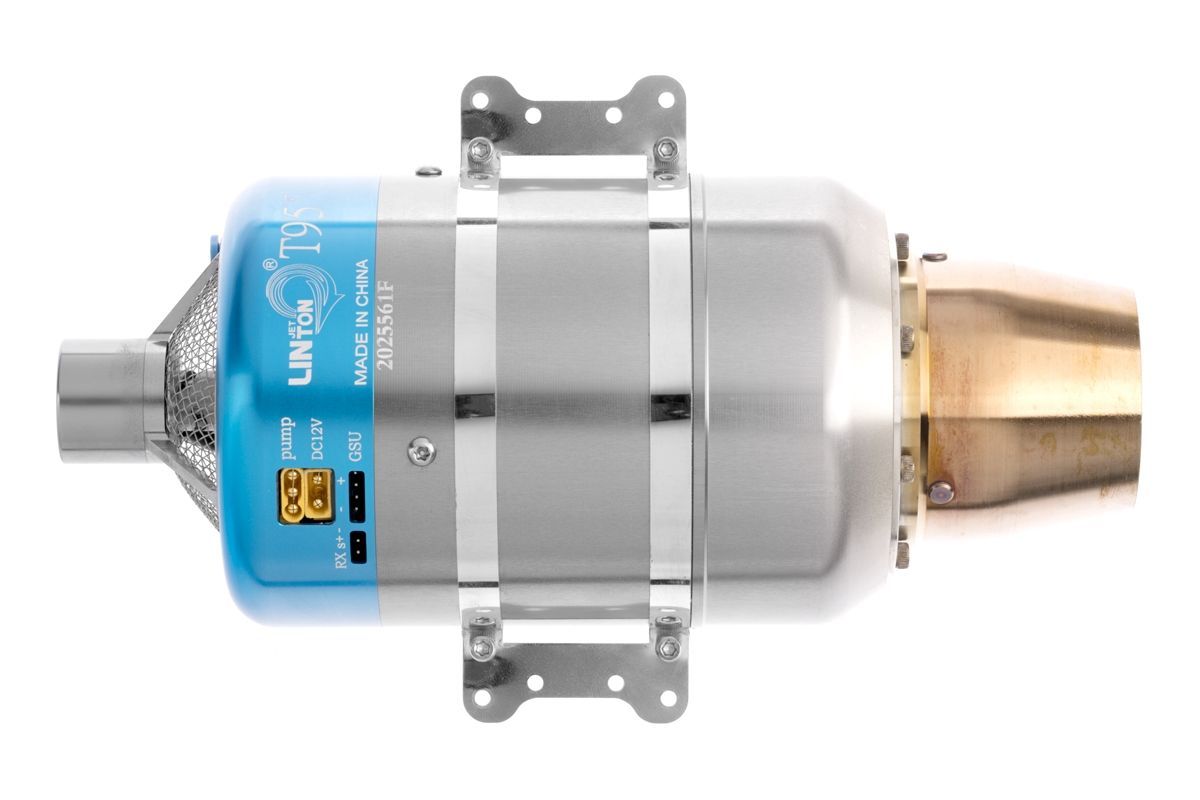Sada motoru obsahuje: Proudový motor Linton T95-GT s řídící jednotkou, motorové lože, pozemní programovací jednotku, palivové čerpadlo, sadu upevňovacích šroubů, palivové potrubí, sadu kabelů a náhradních dílů, návod.
