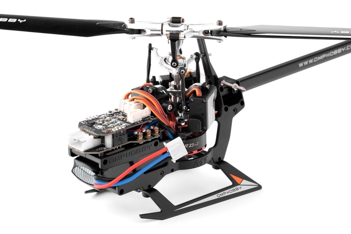 Elektroniku vrtulníku tvoří inteligentní řídící jednotka s integrovanou 3G flybarless řídící jednotkou, elektronickým regulátorem otáček s funkcí governoru a tři digitální pikoserva DS2045 s kovovými převody ovládající CCPM (120°) mixovanou desku cykliky. Pro řízení vrtulníku budete potřebovat aspoň šestikanálovou RC soupravu s miniaturním přijímačem s S.BUS portem (nebo také DSM/DSMX). Pro obyčejné poletování nemusí být vysílač ani počítačový (všechny potřebné mixy obstarává řídící jednotka), stačí jen 4 kanály na kniplech a pátý kanál s dvoupolohovým přepínačem pro přepínání režimů řídící jednotky se stabilizací a 3D. Samozřejmě, pro plnohodnotné klasické a 3D létání je třeba počítačový vysílač s nastavitelnými 2-3 letovými režimy s aspoň pětibodovými křivkami kolektivu pro visení a akrobacii a dalším režimem pro autorotaci.