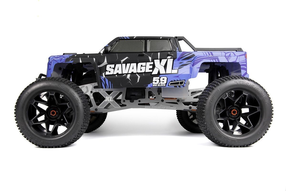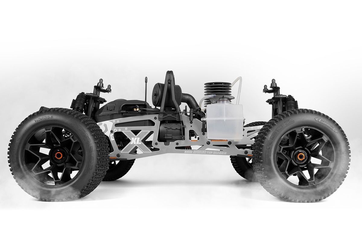 Model XL, postavený na osvědčené platformě Savage X, se vyznačuje prodlouženým podvozkem TVP, delším rozvorem a širokým, stabilním rozchodem kol, což zaručuje jisté ovládání v náročném terénu. Jádrem vozu je výkonný motor o objemu 5,9 cm³, spárovaný s robustním pohonem navrženým pro náročné podmínky.