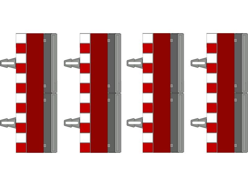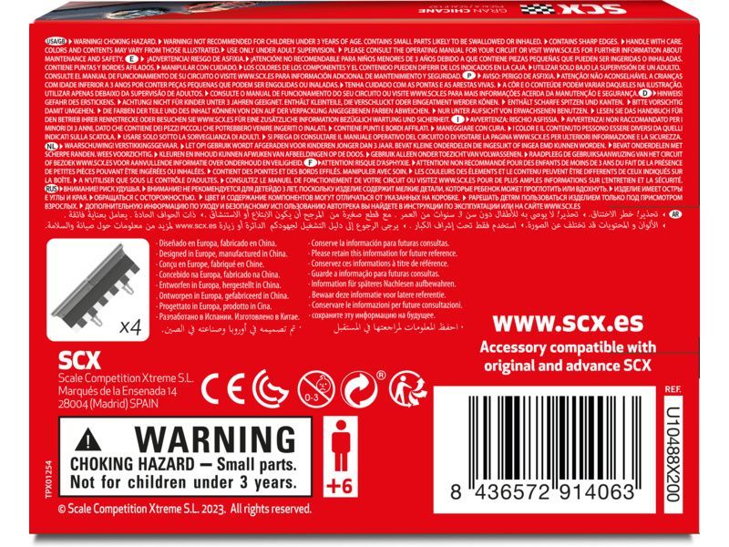 Krajince s mantinely pro rovinku 180mm autodráh SCX 1:32. Balení obsahuje 4 kusy krajnic s mantinely.