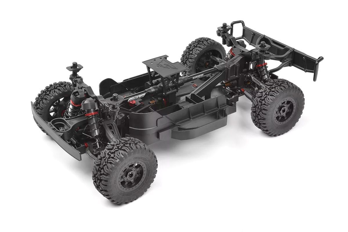 SHIROI není jen rychlý, ale také skvěle vypadá! Od vnitřní ochranné klece až po realistické nárazníky každý detail byl navržen tak, aby odrážel skutečné short course závody. Předřezaná karoserie se vyznačuje agresivním stylem a otevřenými podběhy kol, které dodávají modelu SHIROI nezaměnitelný offroadový charakter. Speciální pneumatiky Mudclaws SC na černých paprskových kolech poskytují vynikající přilnavost a realistický vzhled, ať už se řítíte přes bláto, štěrk nebo skoky.