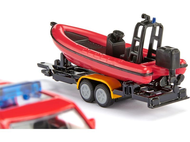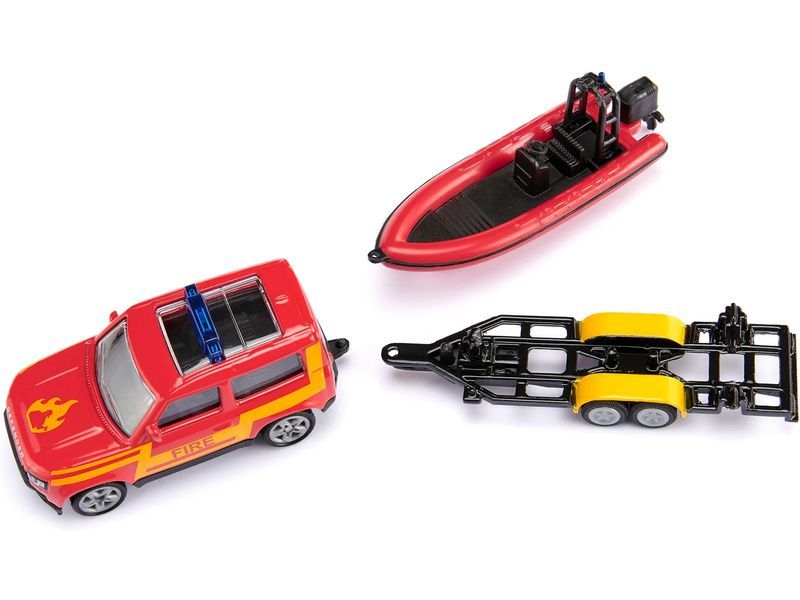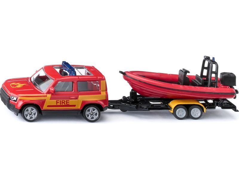 Kovový model auta Land Rover s přívěsem a člunem v měřítku 1:50 od značky Siku. Model auta má pogumované pneumatiky, čirá okna a zpracovaný interiér. Na odpojitelném přívěsu je člun s výklopným motorem, který skutečně plave. Vhodné pro hraní i sběratelství. Kvalitní zpracování z kovu a plastu. Baleno v blistru.