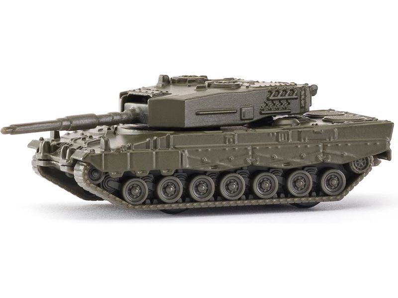 Kovový model tanku od značky Siku. Bojový tank má pohyblivou dělovou věž. Pásy jsou pevné (na spodní straně modelu jsou kolečka). Vhodné pro hraní i sběratelství. Kvalitní zpracování z kovu a plastu. Baleno v blistru.