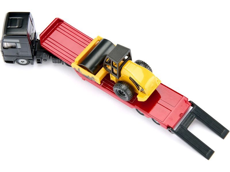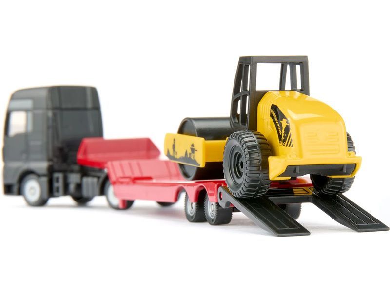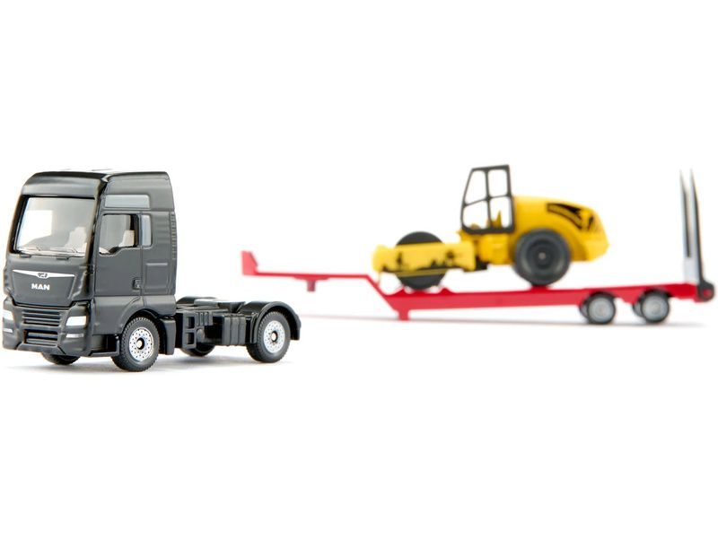 Kovový model tahače MAN s návěsem a válcem v měřítku 1:87 od značky Siku. Tahač s čirými okny a zpracovaným interiérem, včetně odpojitelného dvounápravového návěsu se sklopnými nájezdy. Válec má kloub pro zatáčení. Vhodné pro hraní i sběratelství. Kvalitní zpracování z kovu a plastu.
