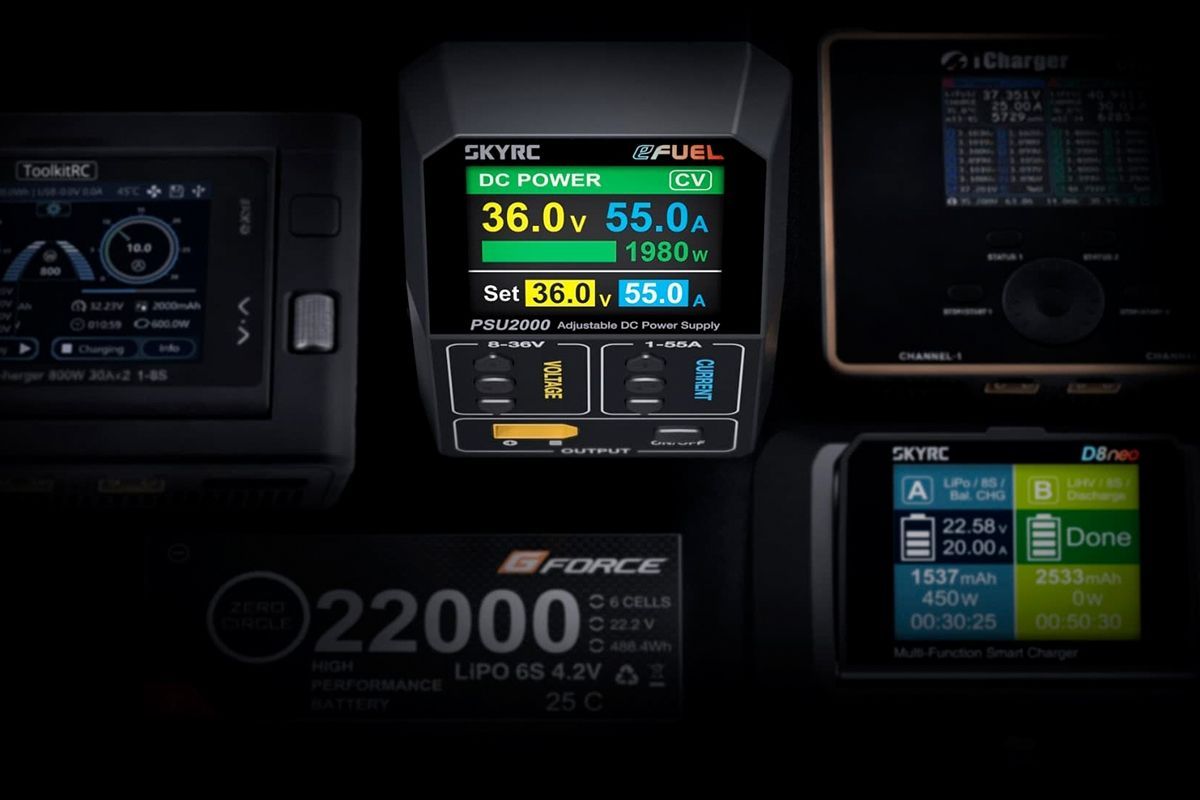 Vysokovýkonný a přitom lehký, kompaktní, v odolném hliníkovém pouzdře stabilizovaný síťový zdroj PSU2000 je ideální pro napájení modelářských nabíječů a dalších zařízení. Nabízí nastavitelné výstupní napětí 8-36 V a proud 1-55 A s výkonem až 2000 W.