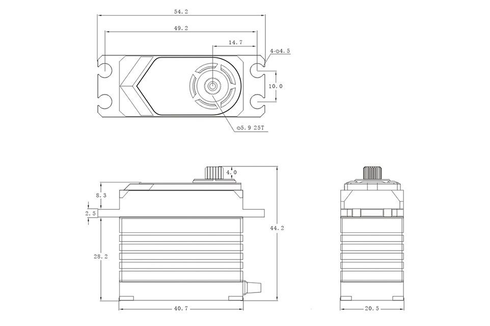 - Standardní rozměr je ideální pro RC modely, ve kterých chcete využívat vysoce kvalitní servo