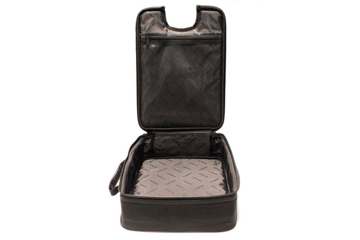 Stěny a víko jsou vyztuženy deskami z EVA pěny, které poskytují pevnou strukturu, která si udržuje svůj tvar a chrání vaše auto před nárazy během přepravy. Vnitřek je kompletně pošit exkluzivní látkou značky Ultimate, která poskytuje prémiové provedení.