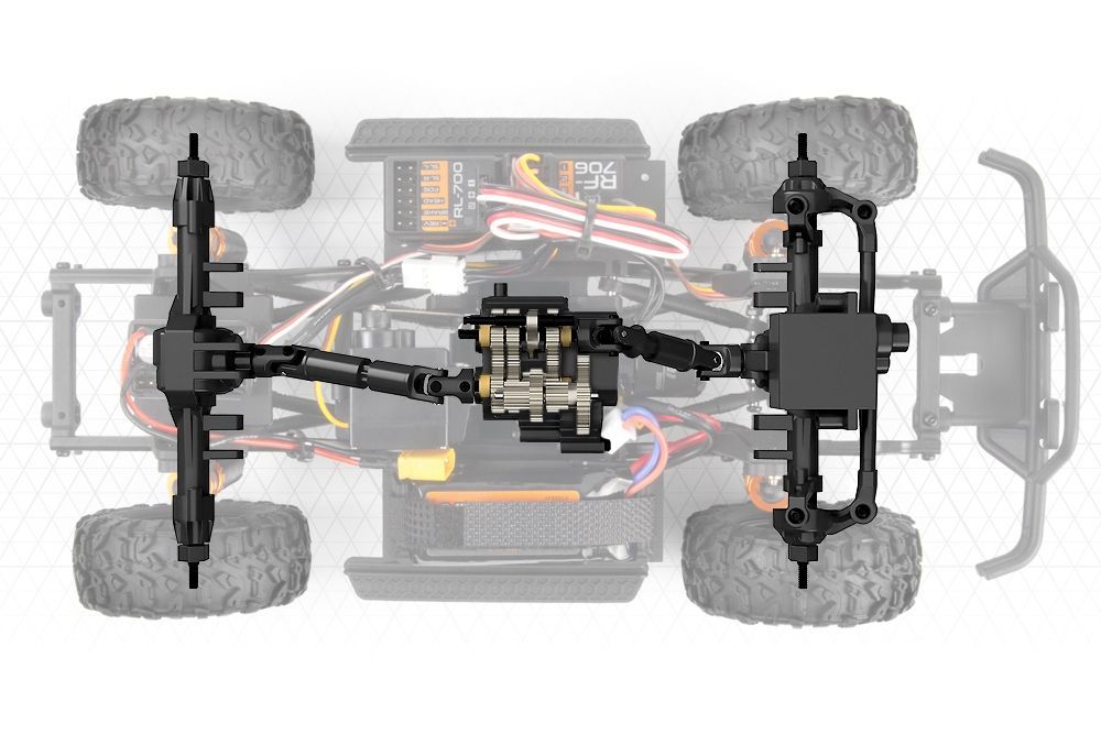 Nízký převod se může pochlubit působivým převodovým poměrem 81,44:1, který poskytuje výjimečné schopnosti při pomalém průchodu na úzkých, technických stezkách a překážkách. A když na rovném, otevřeném úseku potřebujete přidat na rychlosti - nebo prostě jen potřebujete vysoký výkon, abyste se dostali do stoupání - stačí na vysílači přeřadit na vysoký převod, čímž získáte převodový poměr 20,36:1, který vám nabídne pořádnou rychlost.