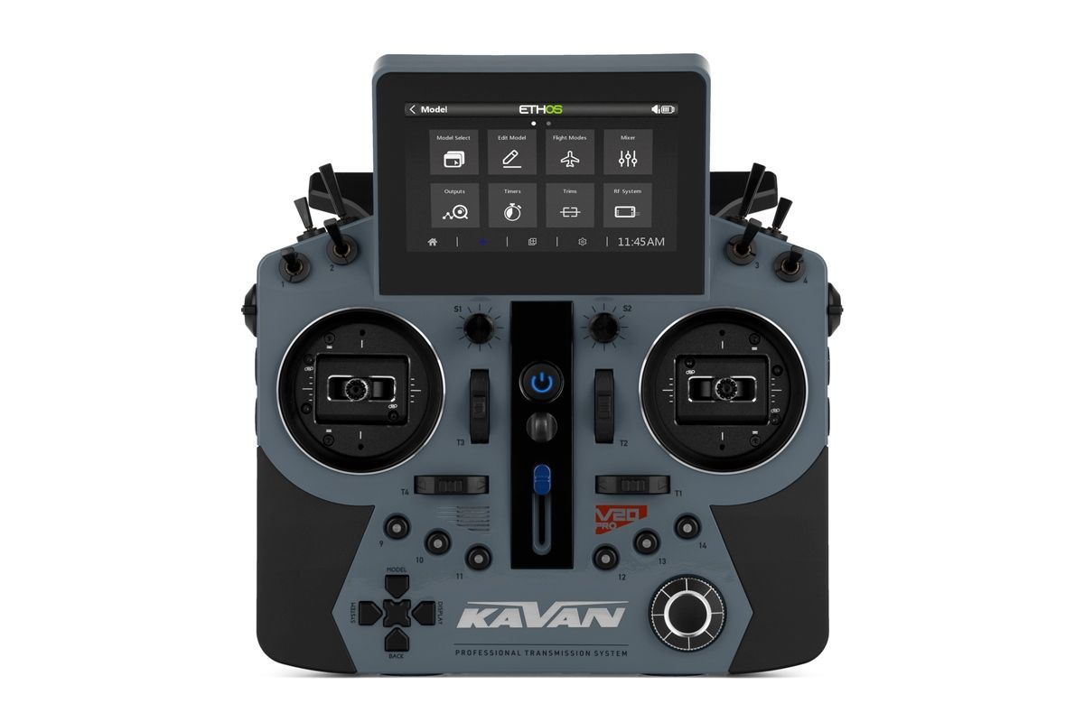 Pro ovládání dalších funkcí slouží 6 třípolohových přepínačů, 2 dvoupolohové (1 momentový) přepínače, 2 postranní otočné ovladače, 6 uživatelsky programovatelných tlačítek (vpředu) a dvě momentová tlačítka (vzadu). Vestavěný 6osý gyroskopický senzor lze nastavit pro ovládání kanálu plynu, řízení výchylek mixu a slouží i pro probuzení displeje. Páčky trimů a knoflíky jsou celokovové, precizně obráběné na CNC. Návrh rozmístění ovladačů a ergonomie těla je výsledkem několika desítek hodin testování a ladění týmem KAVAN.