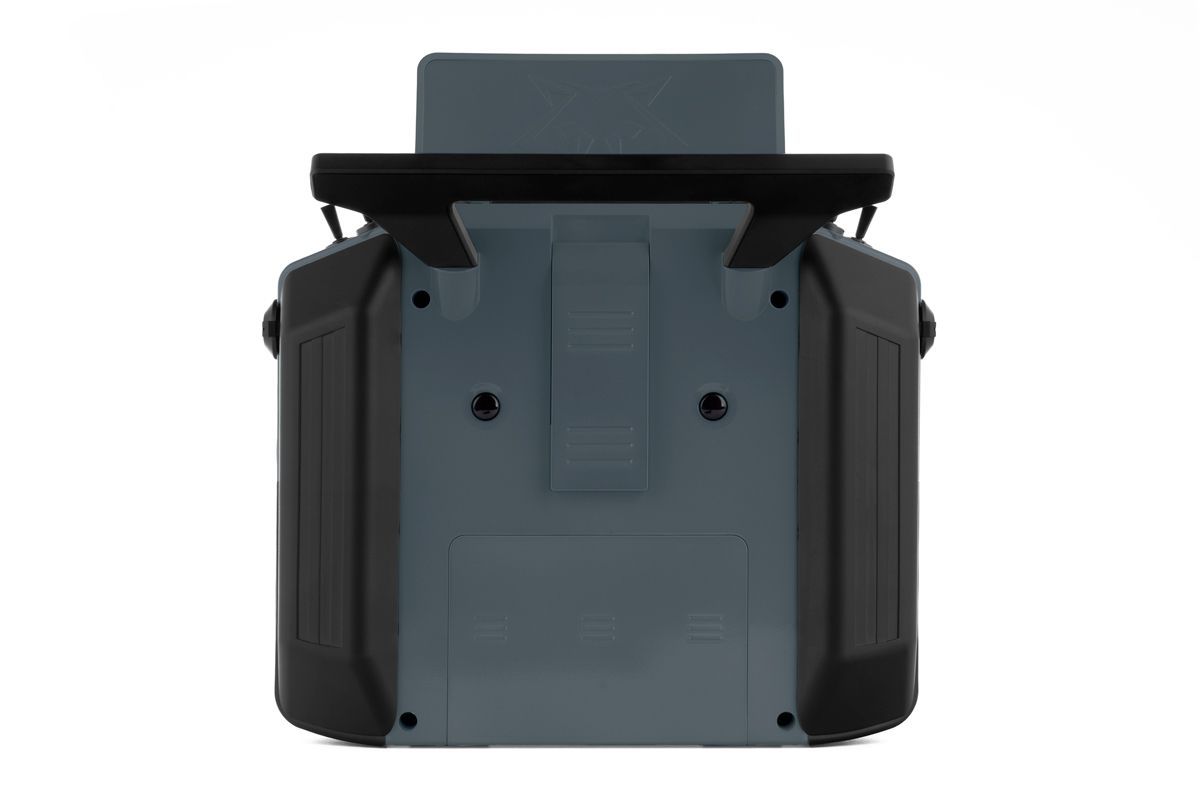 Tělo vysílače je robustní a dokonale padnoucí do ruky. Pogumované gripy na bocích a zadní straně vysílače poskytují pevný pohodlný a jistý úchop. Odtud bez obtíží dosáhnete na všechny ovladače. Gimbaly se nachází těsně u okrajů vysílače. Na komfortní držení vysílače tedy nepotřebujete ani pult. Pro maximální ergonomii lze dokoupit i dlouhé tuningové páky s přepínači.