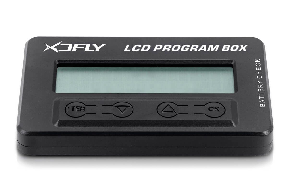 Multifunkční LCD programovací box pro regulátory vybraných řad XDFly slouží ke snadnému a rychlému programování regulátorů - doma na stole" stejně jako na letišti. Kromě toho může sloužit jako servotester, umí také měřit šířku a frekvenci signálových impulsů např. na výstupu z přijímače. Vybaven je také vstupem umožňujícím měřit celkové napětí a napětí jednotlivých článků lithiových akumulátorových sad 2-8S.